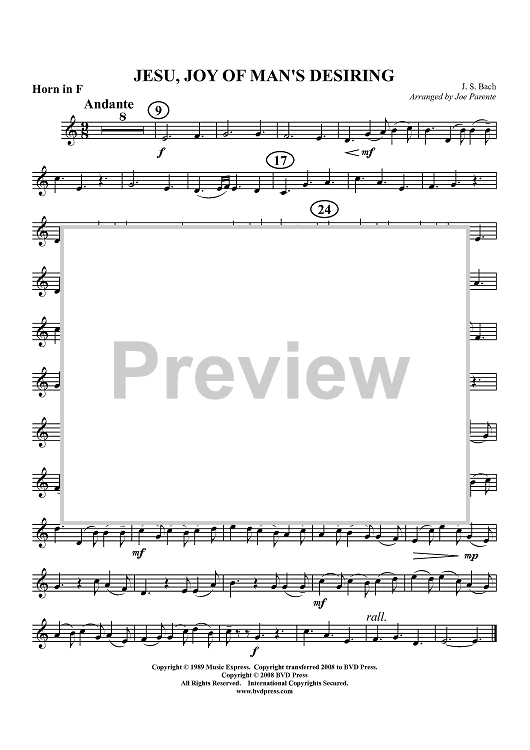 Digital Sheet Music for Jesu, Joy of Man's Desiring - Horn by Johann Sebastian Bach, Joe Parente scored for Brass Quintet; id:405046