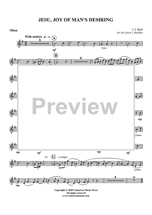 Digital Sheet Music for Jesu, Joy of Man's Desiring - Oboe by Johann Sebastian Bach, Lewis J. Buckley scored for Woodwind Quintet; id:416443