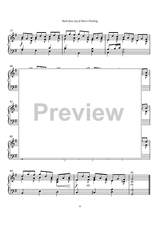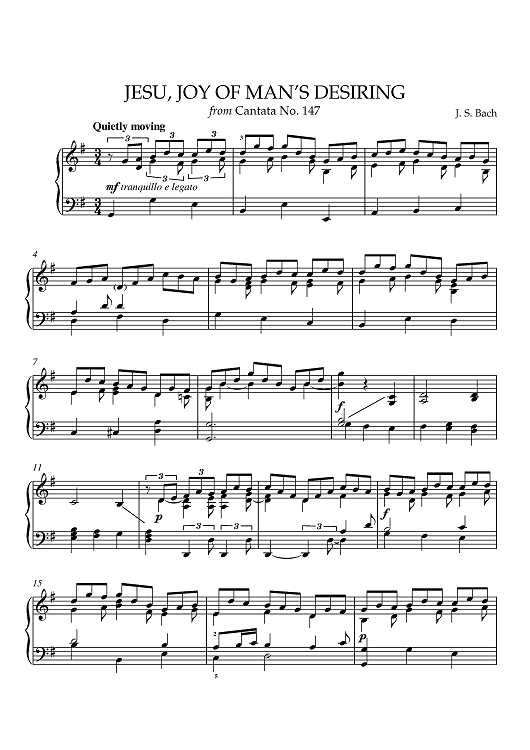 Digital Sheet Music for Jesu, Joy of Man's Desiring by Johann Sebastian Bach scored for Piano; id:369970