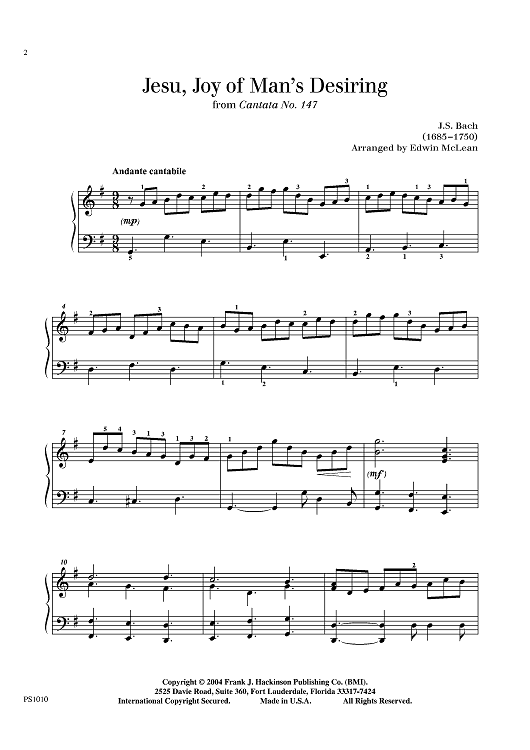 This beloved work from J.S. Bach's Cantata No. 147 remains among the best known of all Baroque pieces. Here is the complete transcription for piano solo, suitable for all keyboard instruments. An eternal piece, whose melody should be part of every musician's vocabulary.