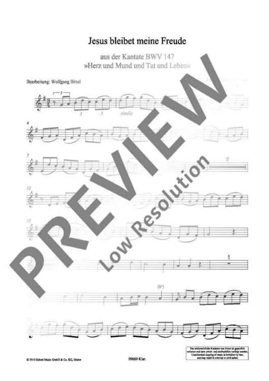 Allenfalls die "Air" von Johann Sebastian Bach kann es an Popularität mit seinem Satz "Jesus bleibet meine Freude" aufnehmen: Der Schlusschor aus der Kantate BWV 147 "Herz und Mund und Tat und Leben" ist in seiner Schlichtheit und Vollkommenheit zugleich zu einem wahren "Ohrwurm" geworden, an dem man sich kaum satt hören kann. Diese Bearbeitung macht dieses Klassik-Highlight auch als Vortrags- und Konzertstück für Klarinette mit Klavier- oder Orgelbegleitung zugänglich.