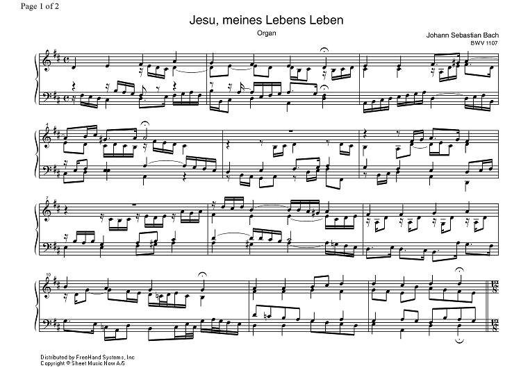 Digital Sheet Music for Jesu, meines Lebens Leben BWV 1107 by Johann Sebastian Bach scored for Organ Solo; id:330702