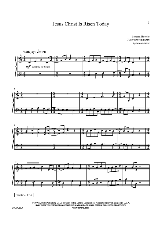 Digital Sheet Music for Jesus Christ Is Risen Today by Lyra Davidica, Barbara Boertje scored for Piano Solo; id:434060