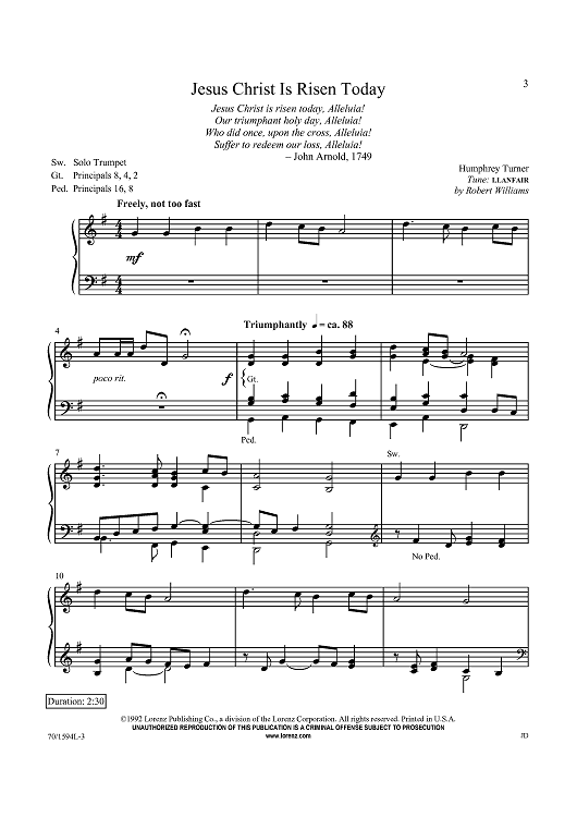Digital Sheet Music for Jesus Christ Is Risen Today by Humphrey Turner scored for Organ Solo; id:434083