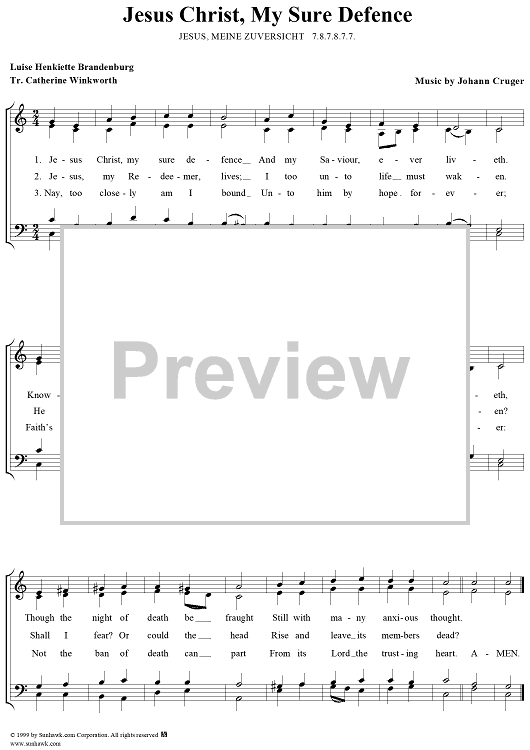 Digital Sheet Music for Jesus Christ, My Sure Defence by Johann Crüger scored for Four-part Mixed Chorus; id:272156