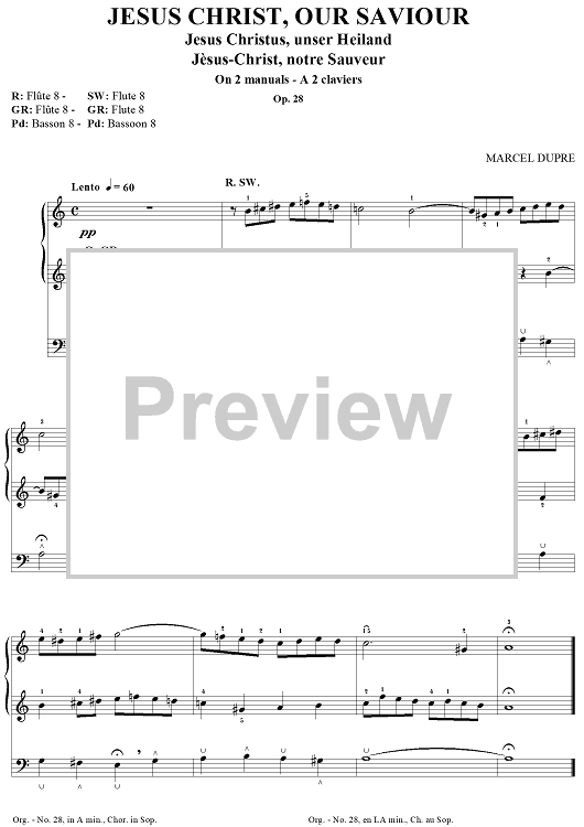 Digital Sheet Music for Jesus Christ, Our Saviour, from "Seventy-Nine Chorales", Op. 28, No. 43 by Marcel Dupre scored for Organ Solo; id:270995