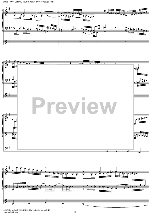 Digital Sheet Music for Jesus Christus, unser Heiland, No. 15 from "18 Leipzig Chorale Preludes", BWV665 by Johann Sebastian Bach scored for Organ Solo; id:319028