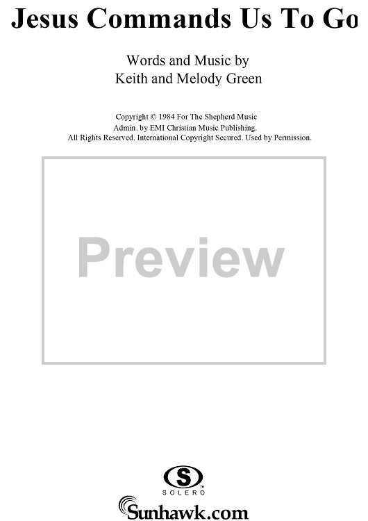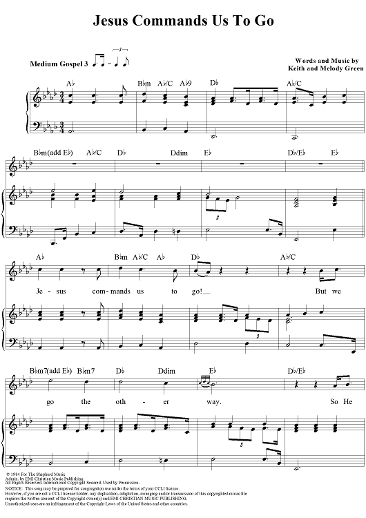 Digital Sheet Music for Jesus Commands Us To Go by Keith Green, Melody Green scored for Piano/Vocal/Chords; id:112103