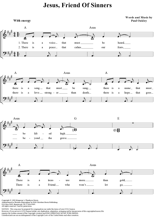 Digital Sheet Music for Jesus, Friend of Sinners by Paul Oakley scored for Piano/Vocal/Chords; id:113726