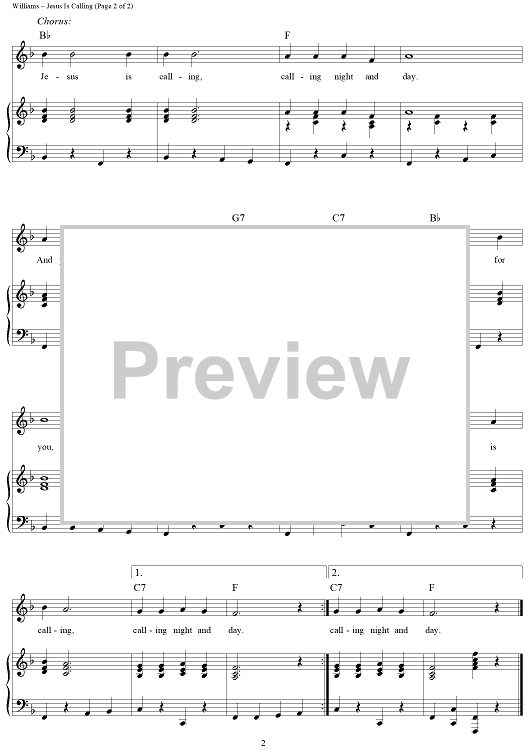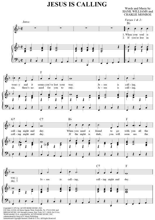 Digital Sheet Music for Jesus Is Calling by Hank Williams, Charlie Monroe scored for Piano/Vocal/Chords; id:264039
