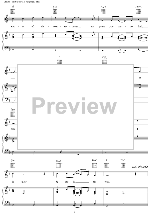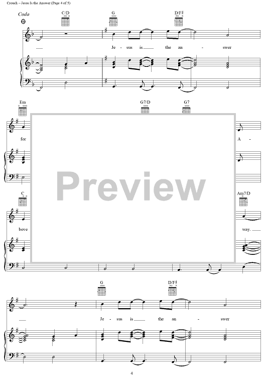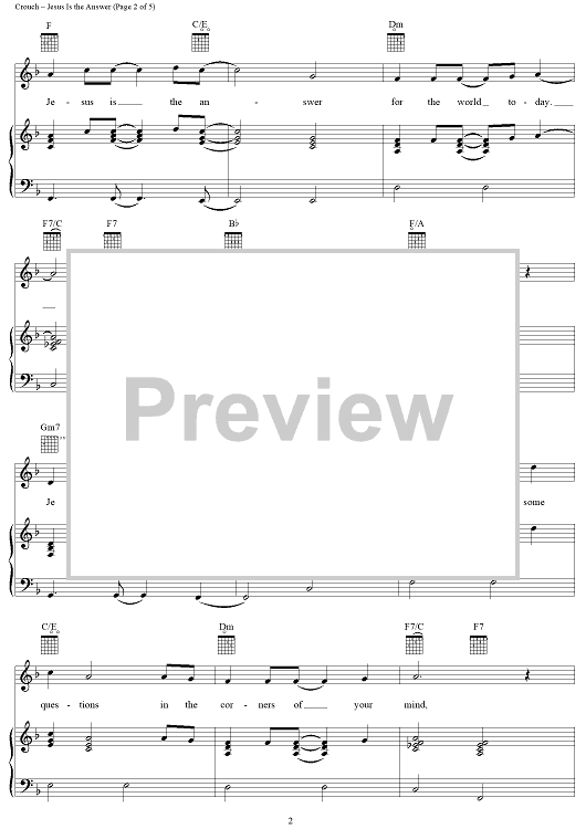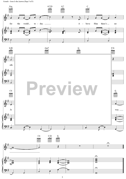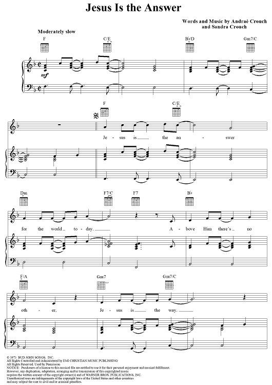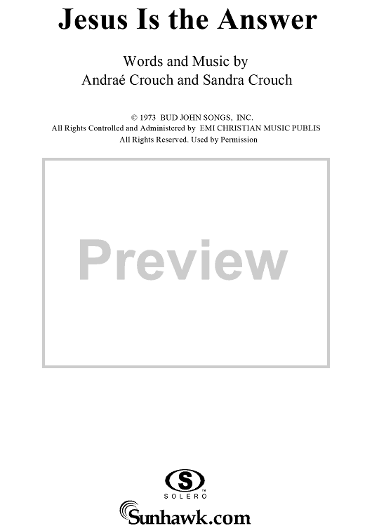 Digital Sheet Music for Jesus Is the Answer by Andrae Crouch, Sandra Crouch scored for Piano/Vocal/Chords; id:113817