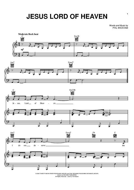 Digital Sheet Music for Jesus Lord Of Heaven by Kutless, Phil Wickham scored for Piano/Vocal/Chords; id:383870