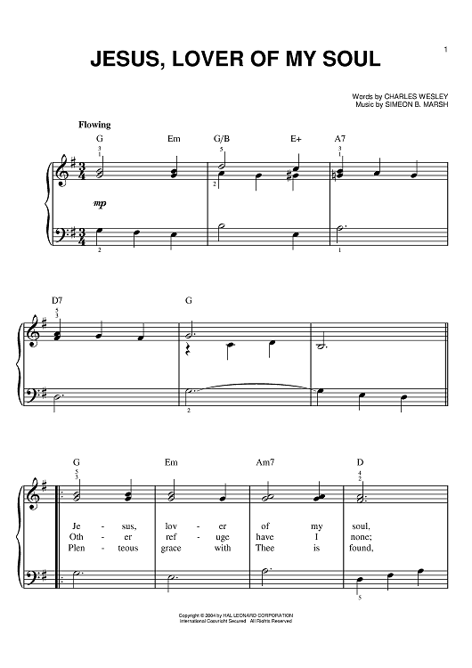 Digital Sheet Music for Jesus, Lover Of My Soul by Charles Wesley, Simeon Buckley Marsh scored for Easy Piano; id:381098