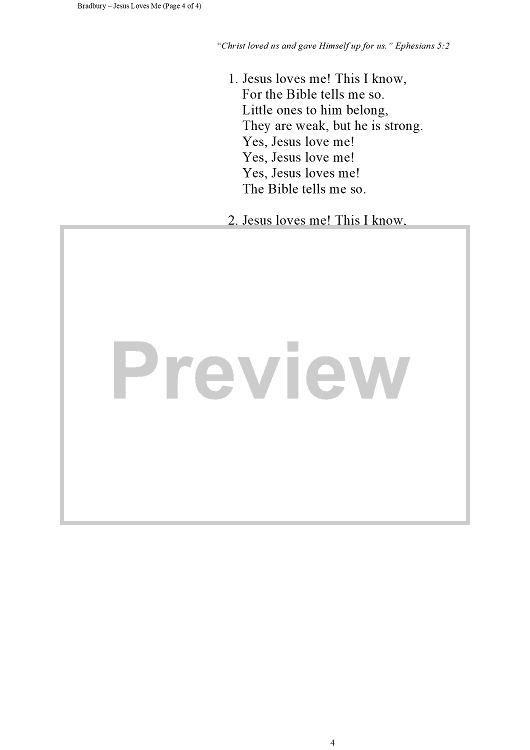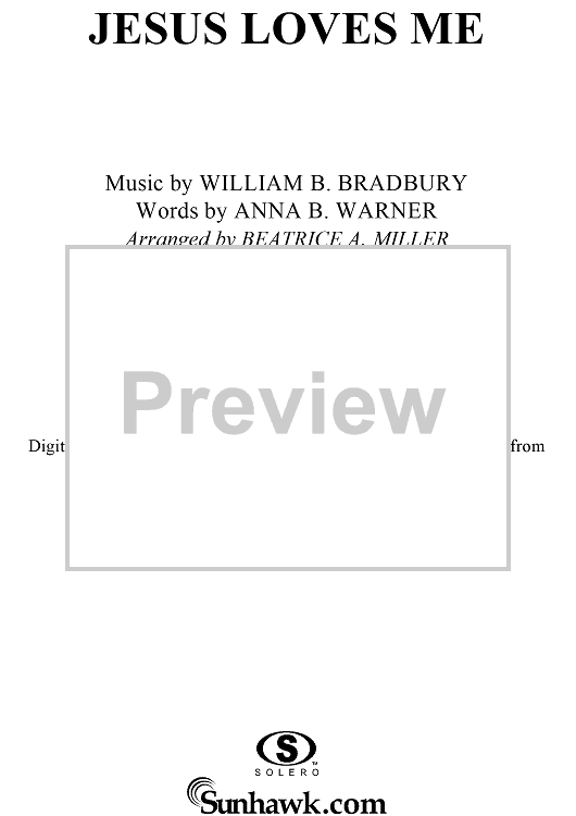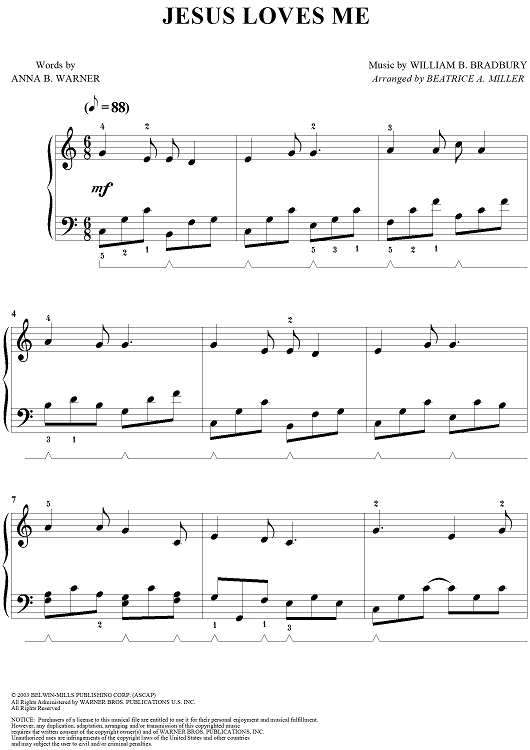 Digital Sheet Music for Jesus Loves Me by Beatrice A. Miller, Anna B. Warner, William B. Bradbury scored for Easy Piano; id:297123