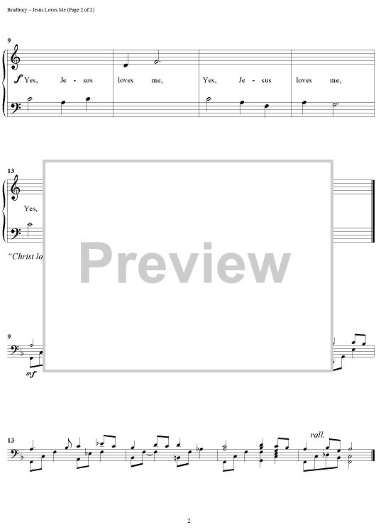 "Jesus Loves Me" Sheet Music by William B. Bradbury