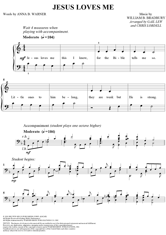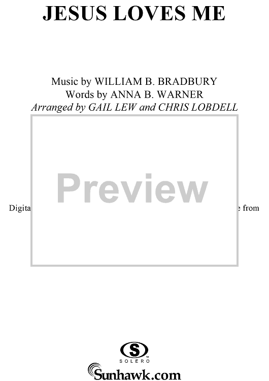 Digital Sheet Music for Jesus Loves Me by Gail Lew, Chris Lobdell, Anna B. Warner, William B. Bradbury scored for Easy Piano/Vocal; id:297162