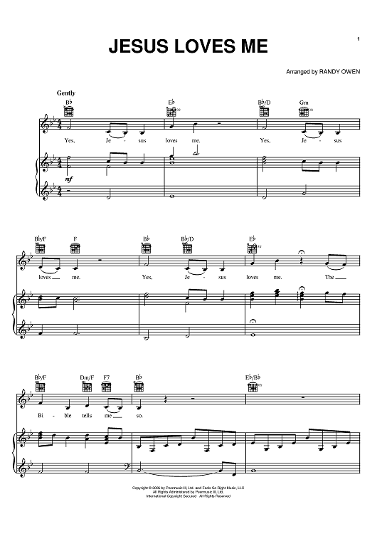Digital Sheet Music for Jesus Loves Me by Randy Owen, Alabama scored for Piano/Vocal/Chords; id:396056