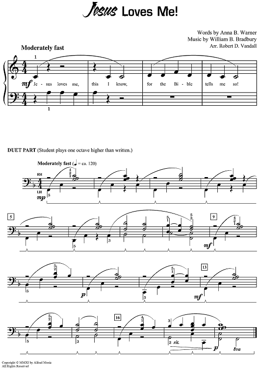 Digital Sheet Music for Jesus Loves Me! by Anna B. Warner, Robert D. Vandall, William B. Bradbury scored for Piano Solo/opt.duet; id:501723