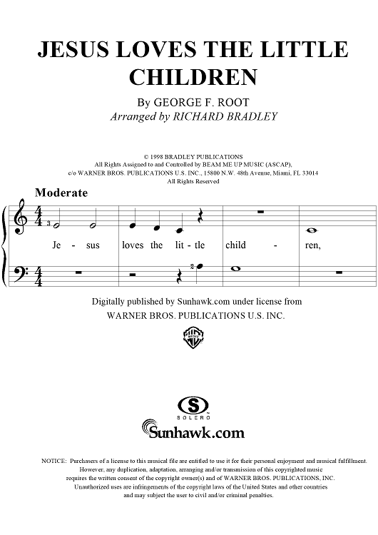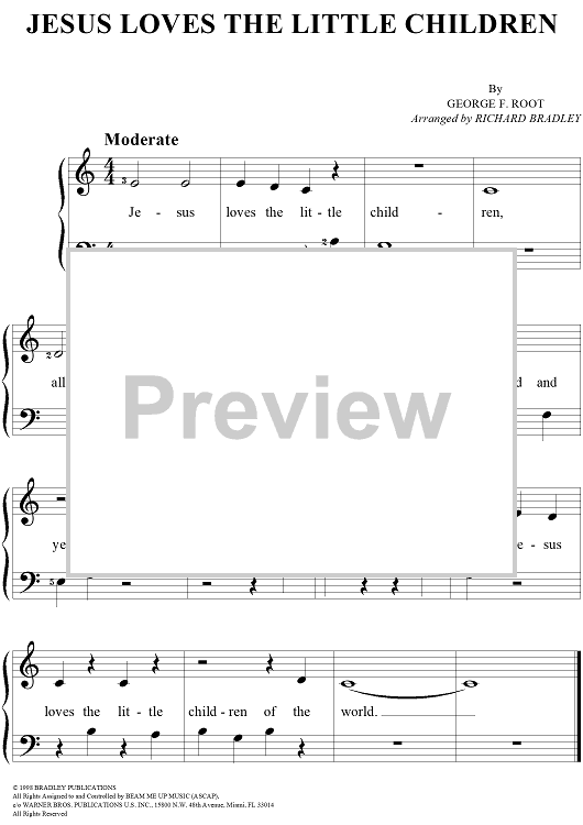 Digital Sheet Music for Jesus Loves the Little Children by Richard Bradley, George F. Root scored for Five Finger Piano/Vocal; id:254908