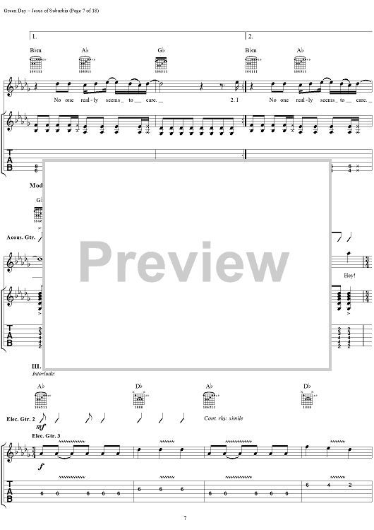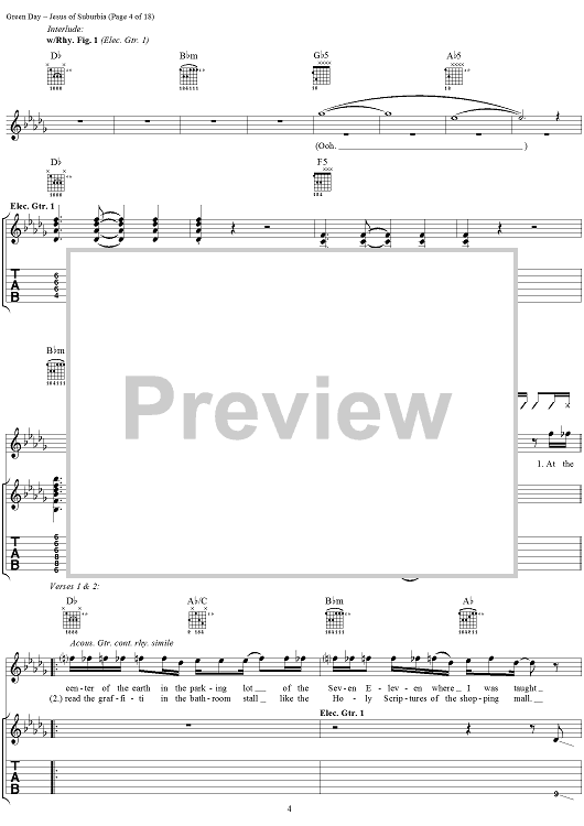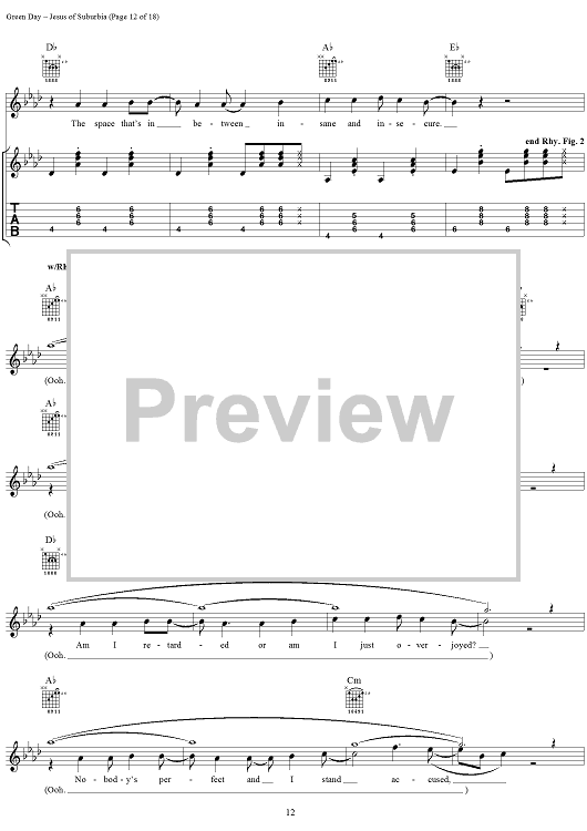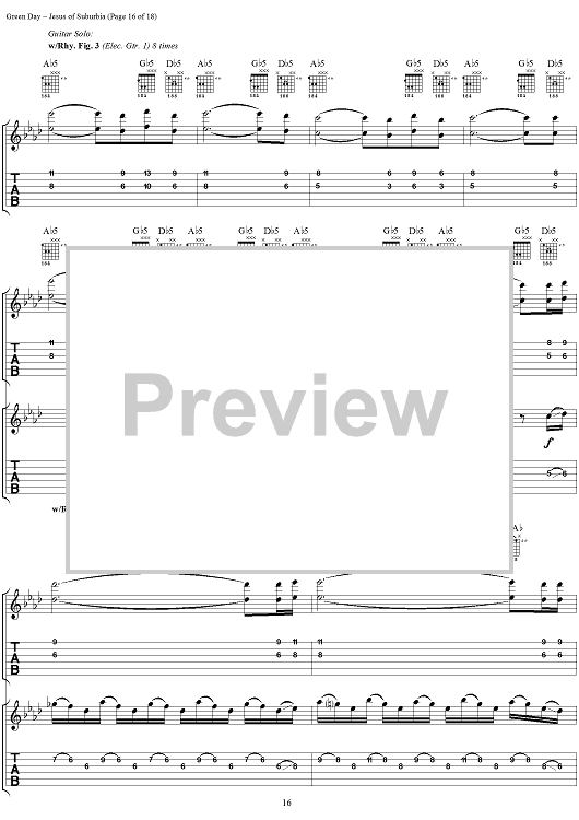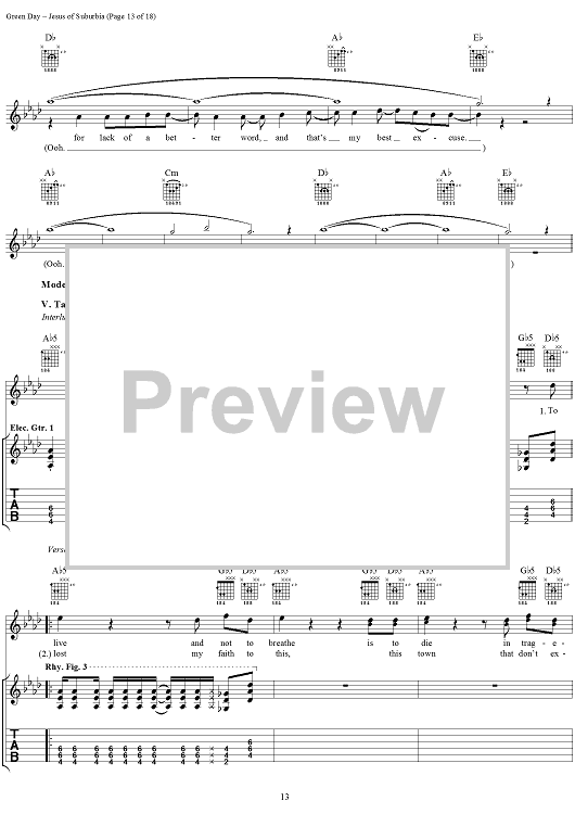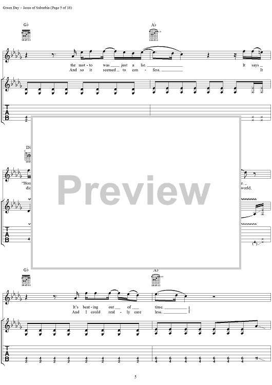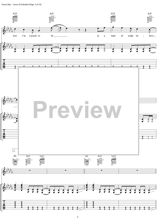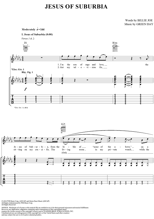 Digital Sheet Music for Jesus of Suburbia by Green Day, Billie Joe scored for Guitar Tab/Vocal; id:308503
