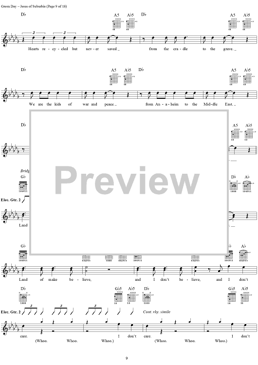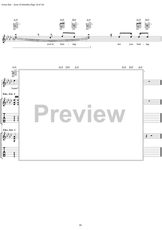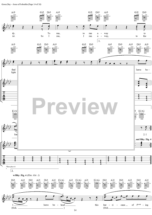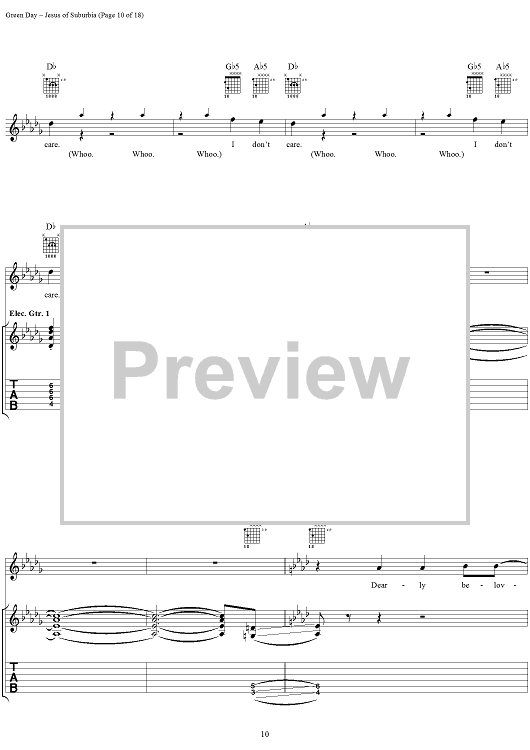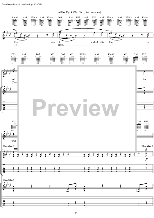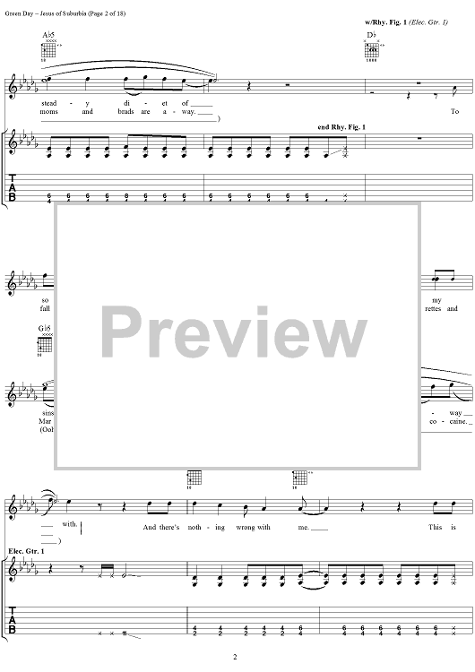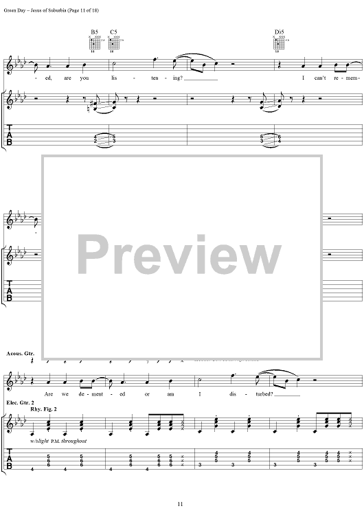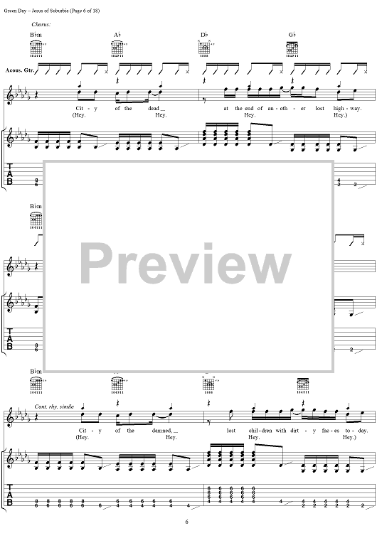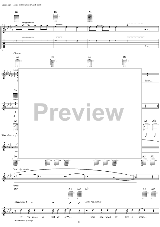 Digital Sheet Music for Jesus of Suburbia by Green Day, Billie Joe scored for Guitar Tab/Vocal; id:308503