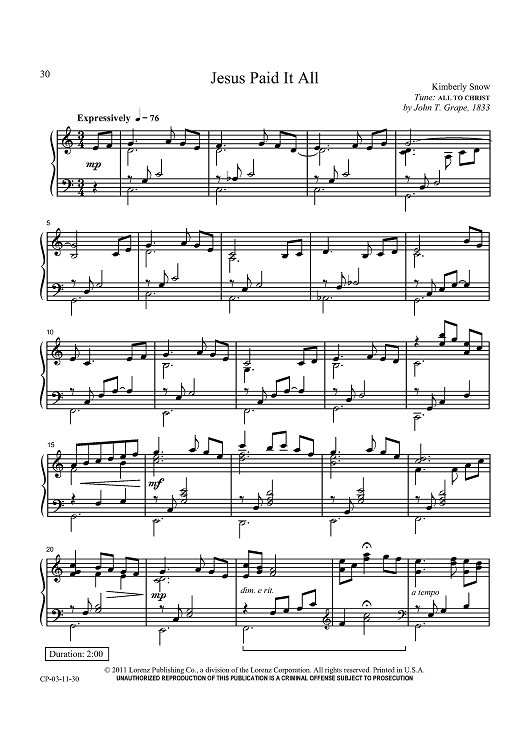 "Jesus Paid it All" Sheet Music by John T. Grape