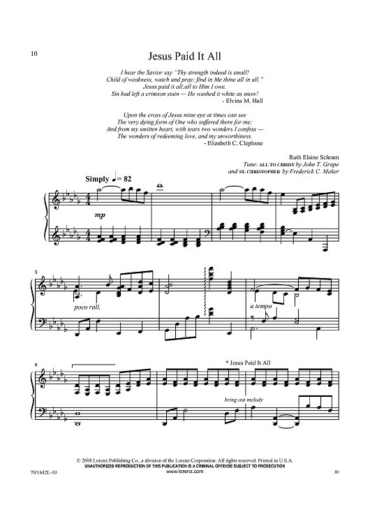 Digital Sheet Music for Jesus Paid It All by Various, Ruth Elaine Schram scored for Piano Solo; id:434113