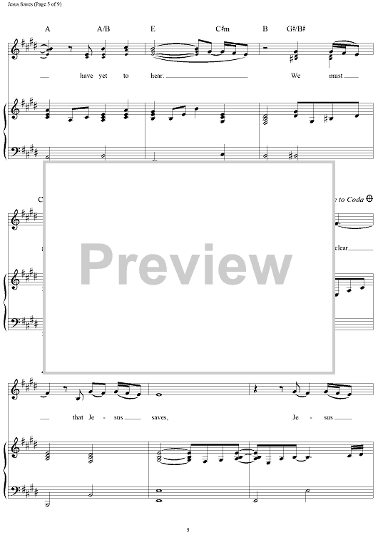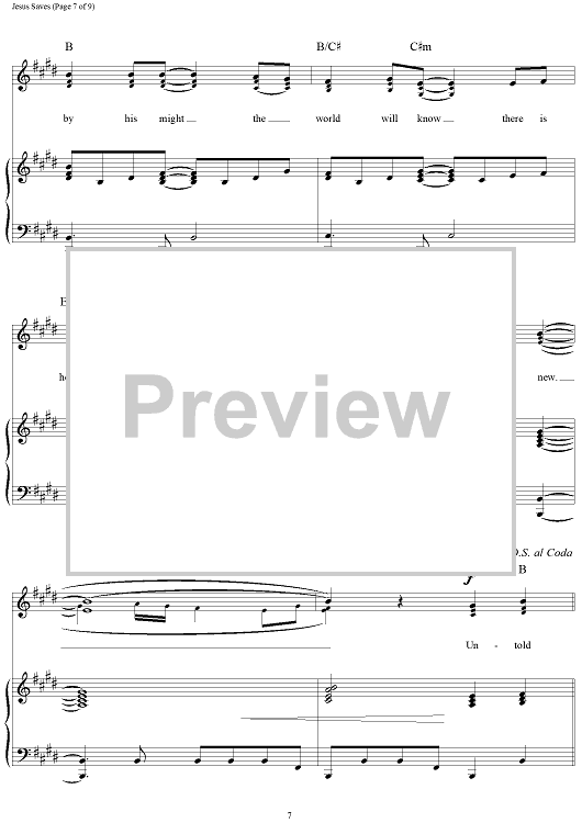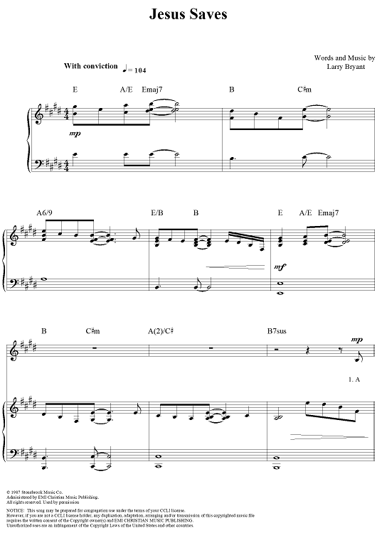 Digital Sheet Music for Jesus Saves by Larry Bryant, Dallas Holm scored for Piano/Vocal/Chords; id:119531