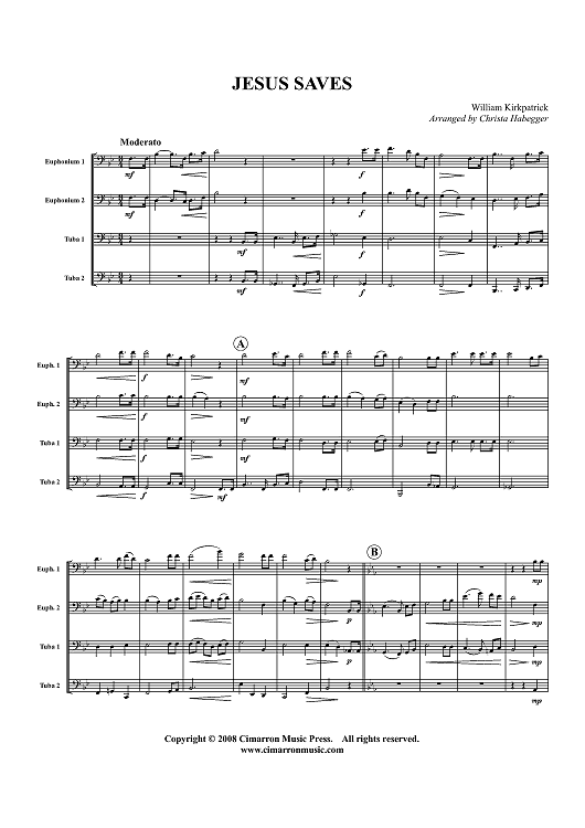 Digital Sheet Music for Jesus Saves - Score by William J. Kirkpatrick, Christa Habegger scored for Tuba Quartet; id:417633