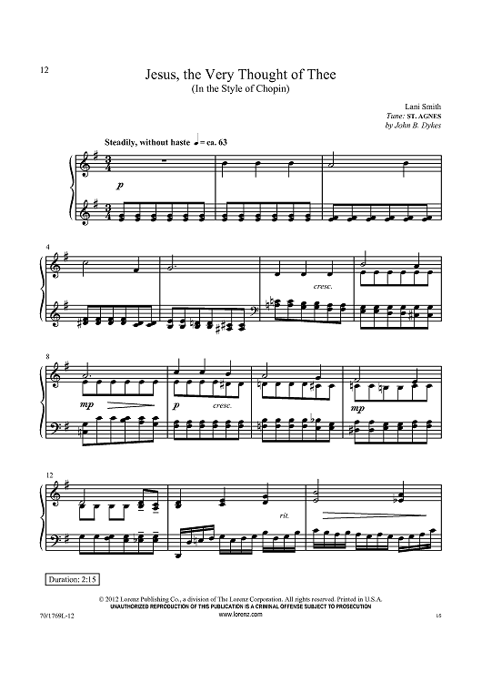 Digital Sheet Music for Jesus, the Very Thought of Thee (In the Style of Chopin) by Lani Smith, John Bacchus Dykes scored for Piano Solo; id:433584