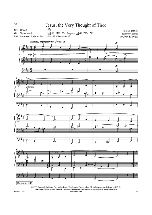 Digital Sheet Music for Jesus, the Very Thought of Thee by Roy M. Darley, John Bacchus Dykes scored for Organ Solo; id:434383