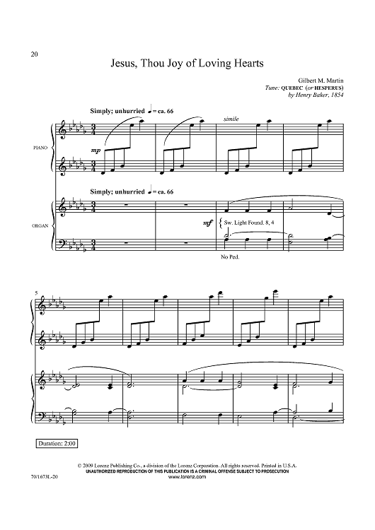 "Jesus, Thou Joy of Loving Hearts" Sheet Music by Henry Williams Baker