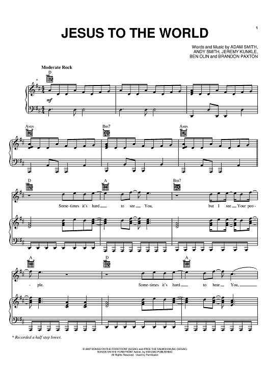 Digital Sheet Music for Jesus To The World by Jeremy Kunkle, Ben Olin, Brandon Paxton, Adam Smith, Andy Smith, This Beautiful Republic scored for Piano/Vocal/Chords; id:397870