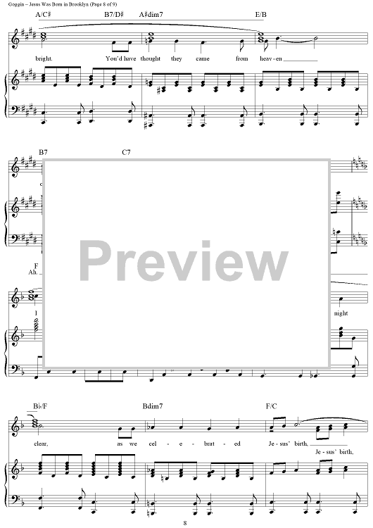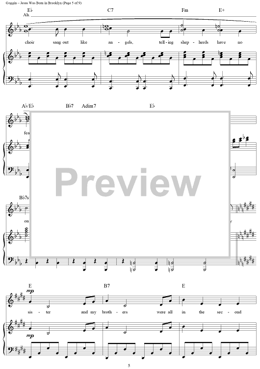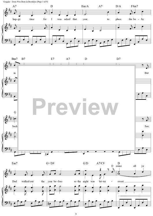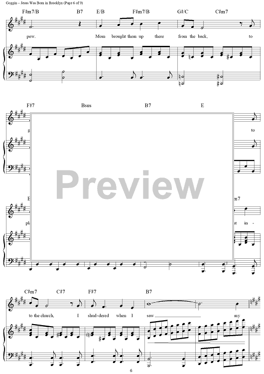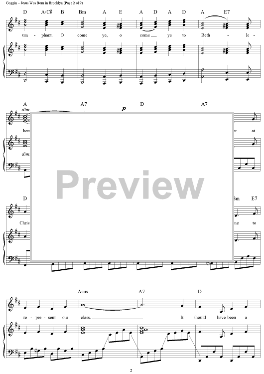 Digital Sheet Music for Jesus Was Born in Brooklyn by Dan Goggin scored for Piano/Vocal/Chords; id:312523