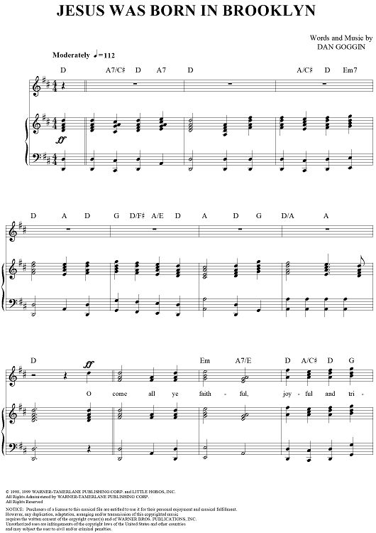 "Jesus Was Born in Brooklyn" Sheet Music by Dan Goggin