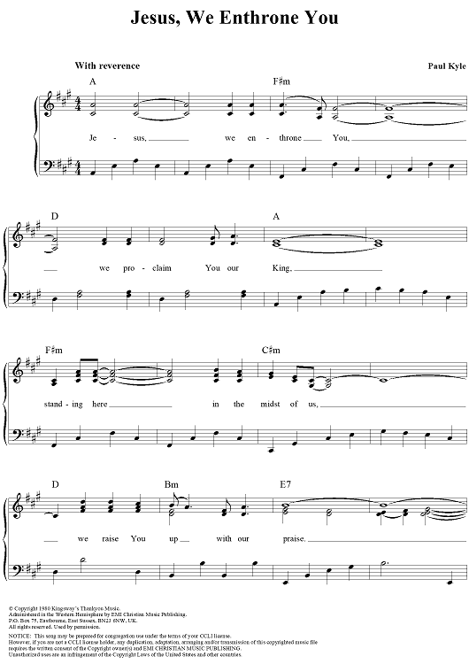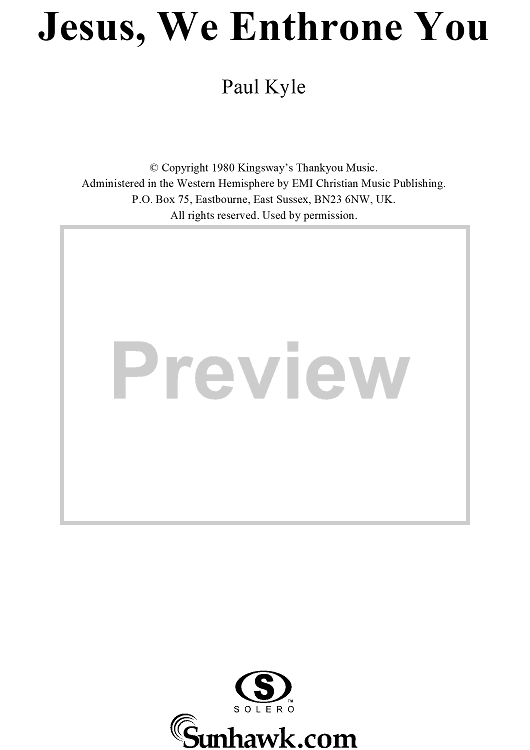 Digital Sheet Music for Jesus, We Enthrone You by Paul Kyle scored for Piano/Vocal/Chords; id:204410