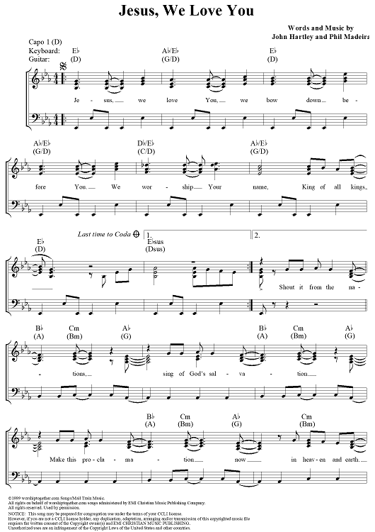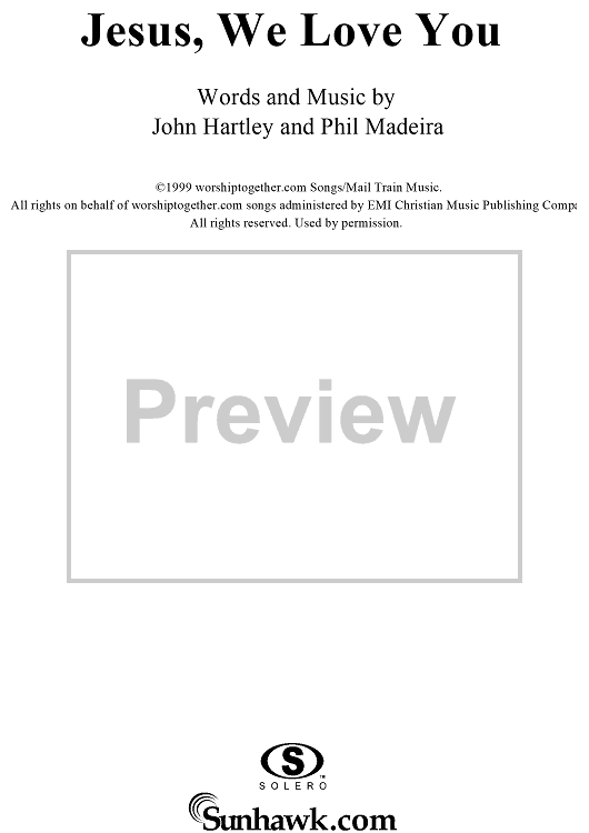 Digital Sheet Music for Jesus, We Love You by John Hartley, Phil Madeira scored for Piano/Vocal/Chords; id:113692