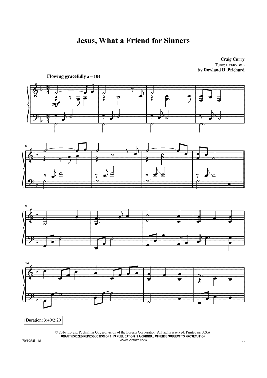 "Jesus, What a Friend for Sinners" Sheet Music by Rowland Hugh Prichard