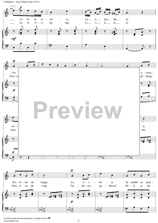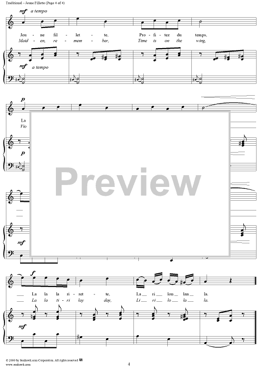 "Jeune Fillette - (Maiden, Remember)" Sheet Music by Traditional
