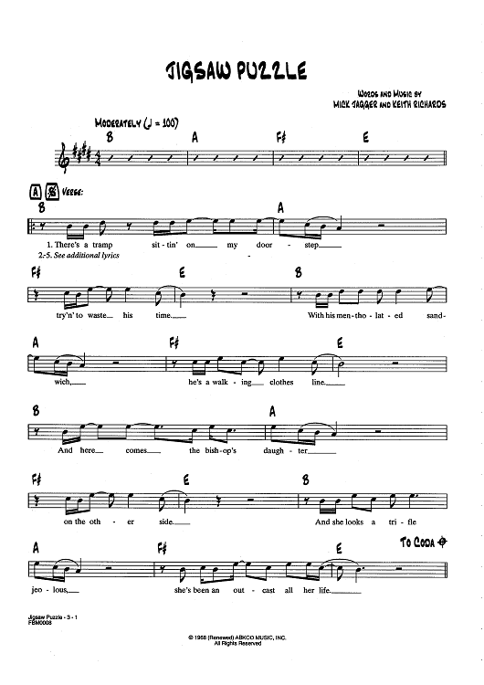 Digital Sheet Music for Jigsaw Puzzle by Keith Richards, The Rolling Stones, Mick Jagger scored for Lead Sheet; id:437357