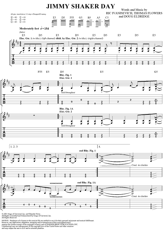 Digital Sheet Music for Jimmy Shaker Day by Oleander, Ric Ivanisevich, Thomas Flowers, Doug Eldridge scored for Guitar Tab/Vocal; id:285309