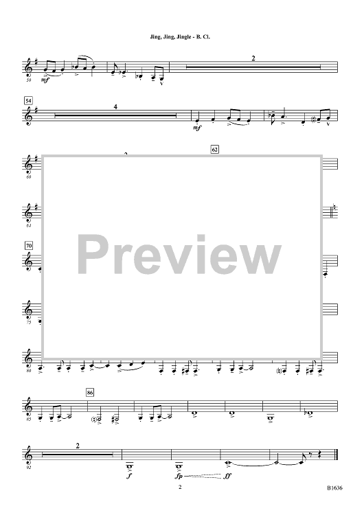 "Jing, Jing, Jingle - Bb Bass Clarinet" Sheet Music by Traditional