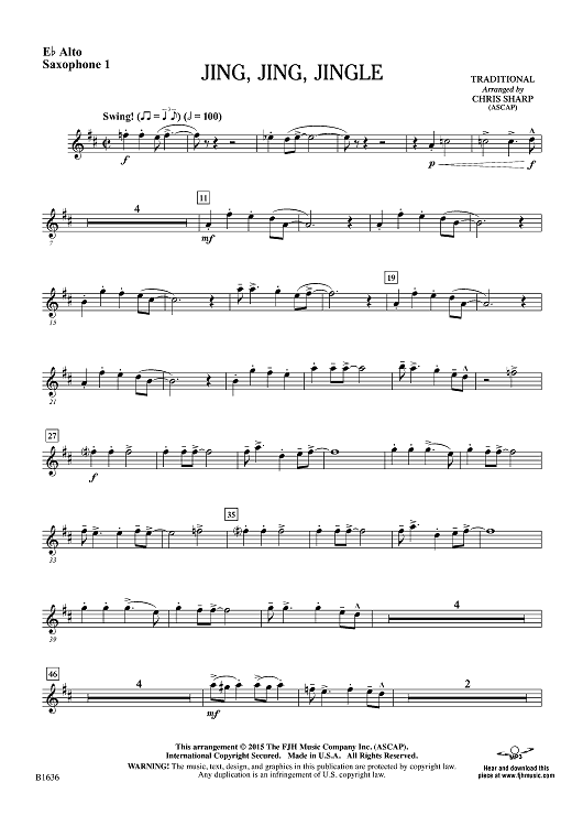 Digital Sheet Music for Jing, Jing, Jingle - Eb Alto Sax 1 by Traditional, Chris Sharp scored for Concert Band; id:455030
