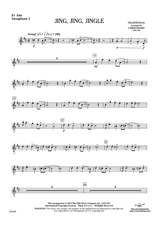 Digital Sheet Music for Jing, Jing, Jingle - Eb Alto Sax 2 by Traditional, Chris Sharp scored for Concert Band; id:455031