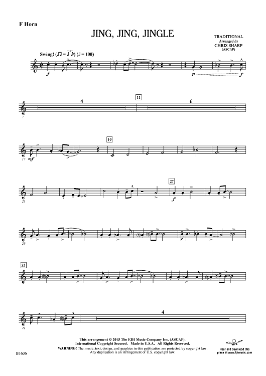 Digital Sheet Music for Jing, Jing, Jingle - F Horn by Traditional, Chris Sharp scored for Concert Band; id:455036