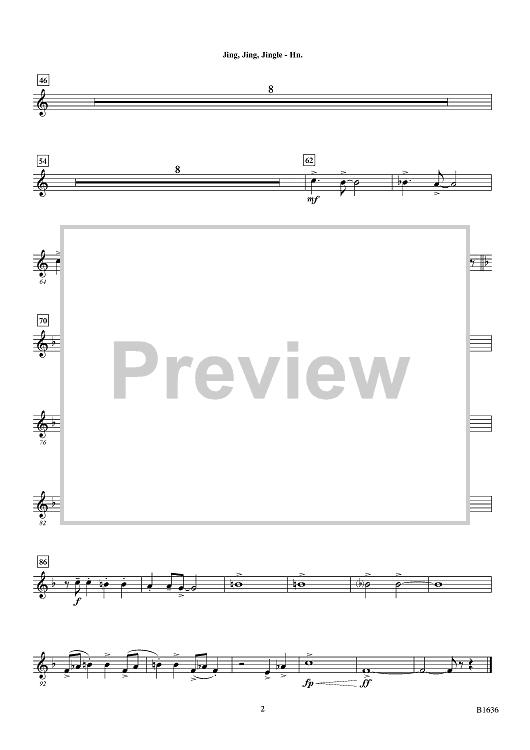 "Jing, Jing, Jingle - F Horn" Sheet Music by Traditional