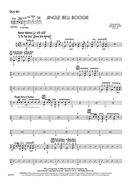 "Jingle Bell Boogie - Drum Set" Sheet Music by Bryan Kidd