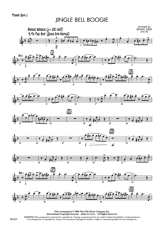 "Jingle Bell Boogie - Tenor Sax 1" Sheet Music by Bryan Kidd