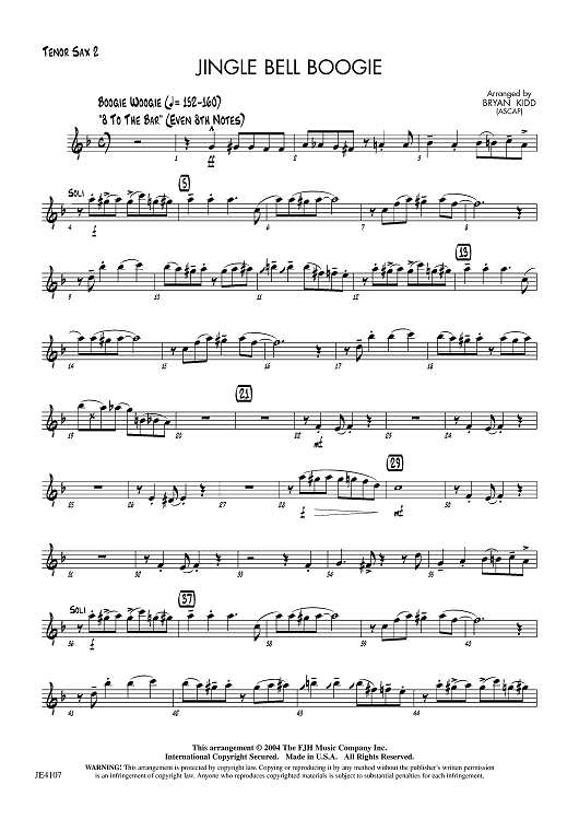 "Jingle Bell Boogie - Tenor Sax 2" Sheet Music by Bryan Kidd