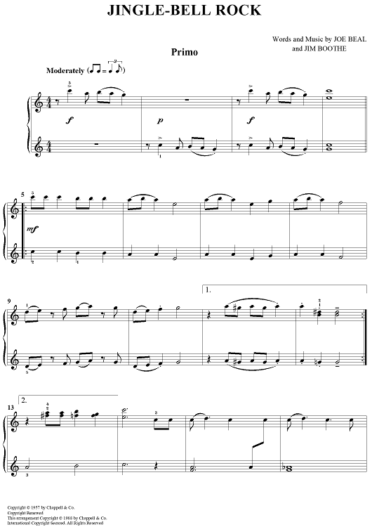 Digital Sheet Music for Jingle-Bell Rock by Aaron Tippin, Joe Beal, Jim Boothe, Bobby Helms scored for 1 Piano, 4 Hands; id:385077